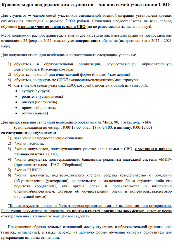 СОЦИАЛЬНАЯ ПОДДЕРЖКА СТУДЕНТОВ И АСПИРАНТОВ В КРАСНОЯРСКОМ ГОСУДАРСТВЕННОМ АГРАРНОМ УНИВЕРСИТЕТЕ ИНФОРМАЦИЯ